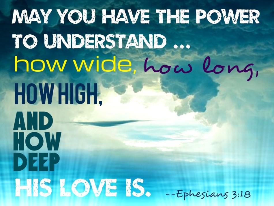 “And may you have the power to understand, as all God’s people should, how wide, how long, how high, and how deep his love is.”–Ephesians 3:18 (NLT)