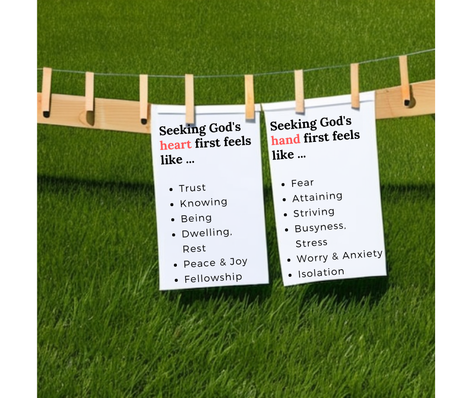 I don’t have all of the answers, but I know that my relationship with God is different when I consider Him the end all be all, instead of the means to an end. Things are better when I pursue God’s heart instead of His hand.